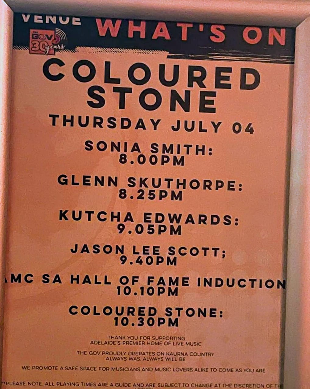 Survival Day SA, Sydney Fringe, Coloured Stone Induction into SA Music Hall of Fame, and lots of other gigs!
